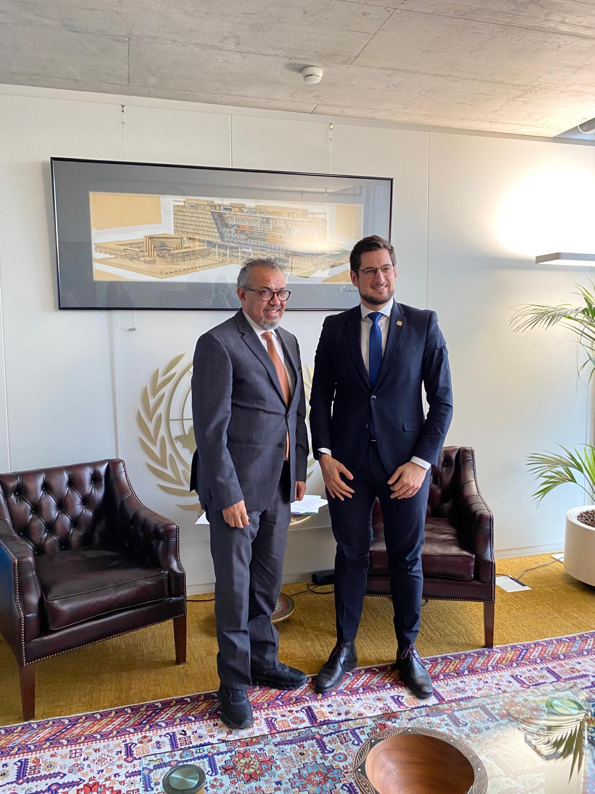 Après cette rencontre, le Ministre-Président a pu s’entretenir avec le Directeur général de l’Organisation mondiale de la Santé, Dr Tedros Adhanom Ghebreyesus. Les discussions ont confirmé l’engagement de la Wallonie en faveur de la santé publique mondiale, en particulier en Afrique francophone.