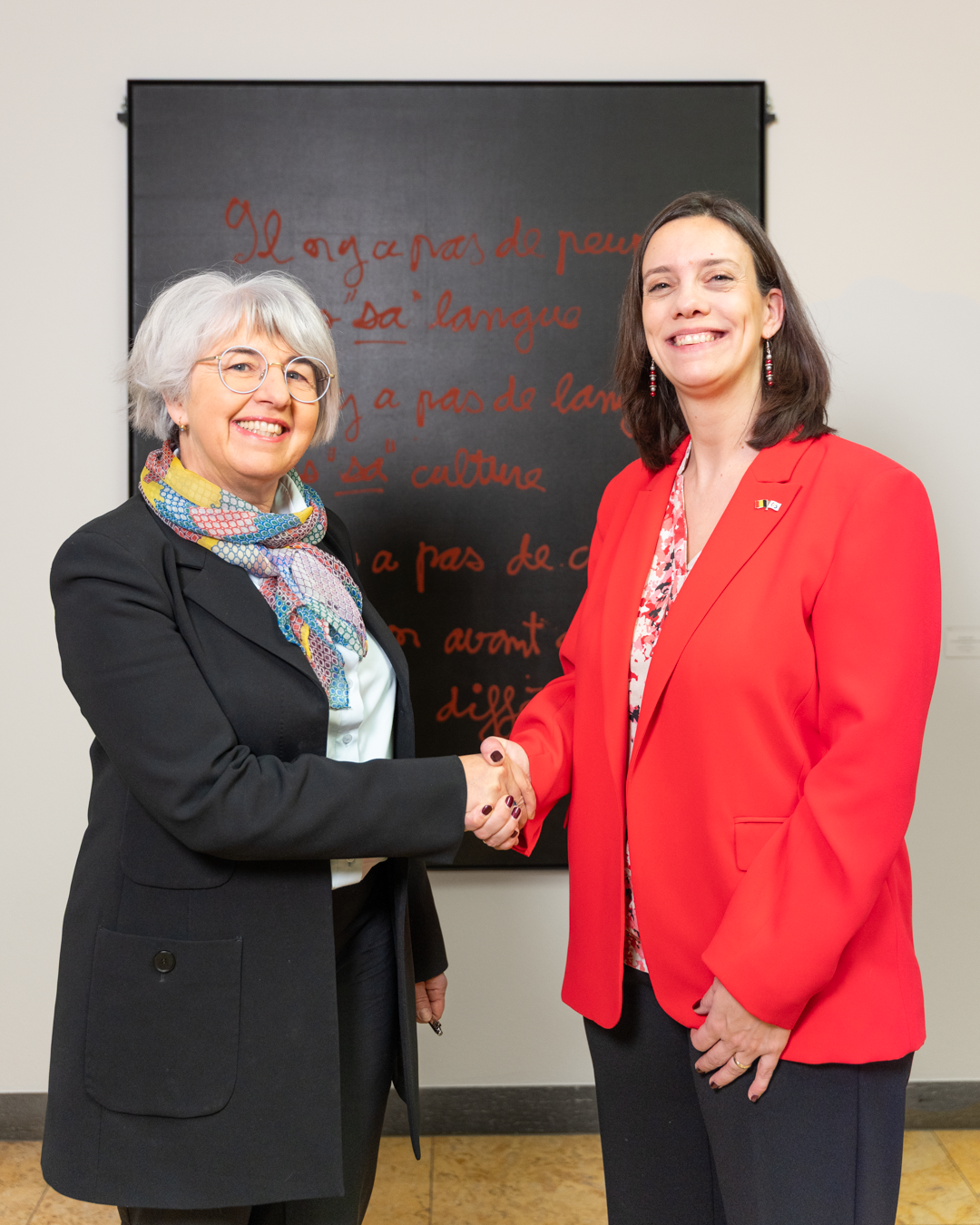 À Berne, elle s’est entretenue avec la Conseillère fédérale en charge de la culture, Mme Elisabeth Baume-Schneider. Les échanges ont mis en évidence la qualité des partenariats culturels entre la Suisse et la Fédération Wallonie-Bruxelles. Ils ont également porté sur des enjeux communs tels que la diversité culturelle, le multilinguisme et le rayonnement de la culture francophone.